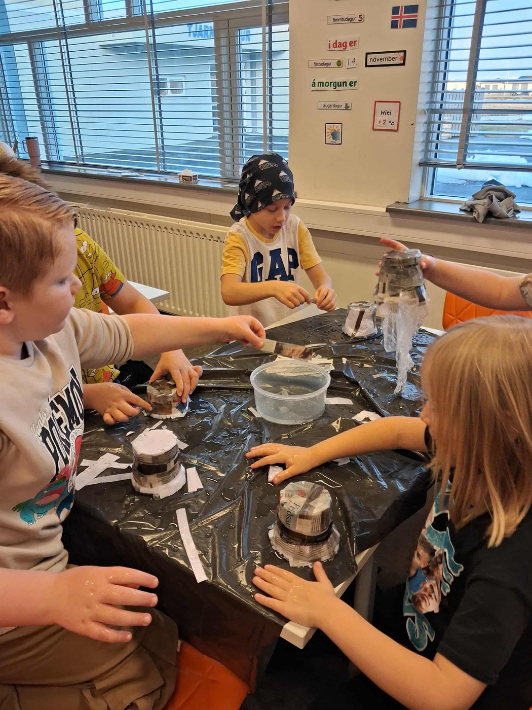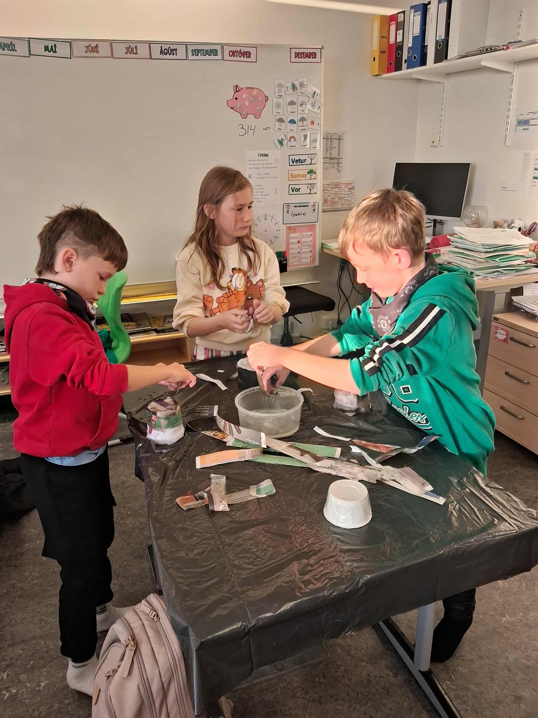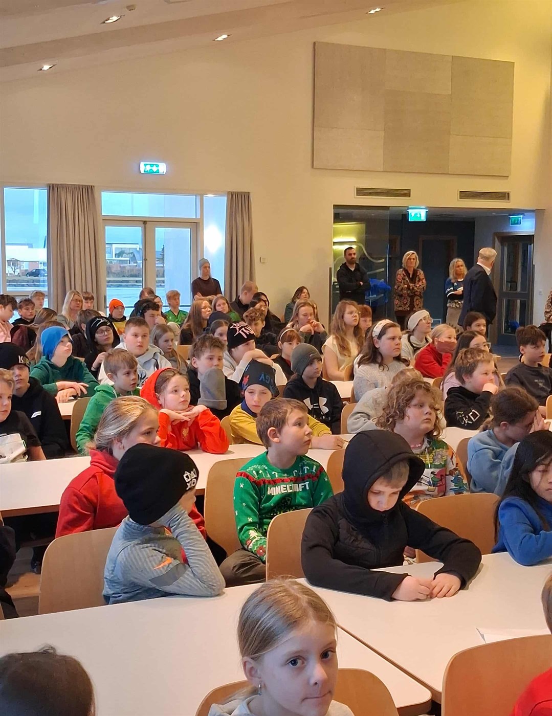 Því næst fóru nemendur í sínar stofur og unnu áfram með verkefni tengd „Degi íslenkrar tungu“.