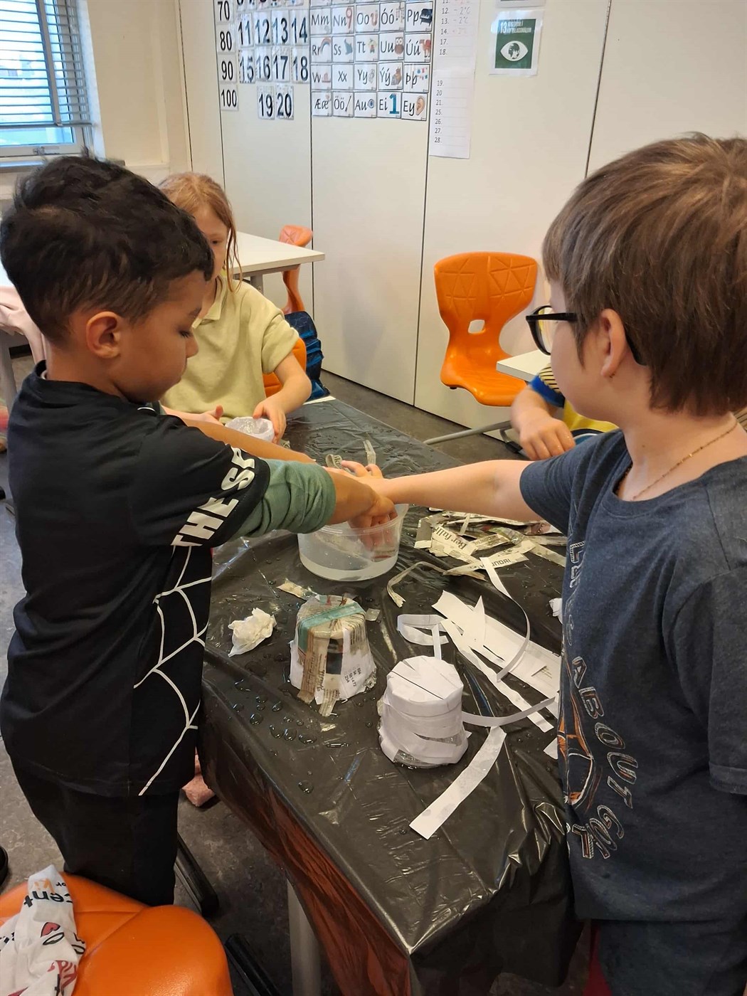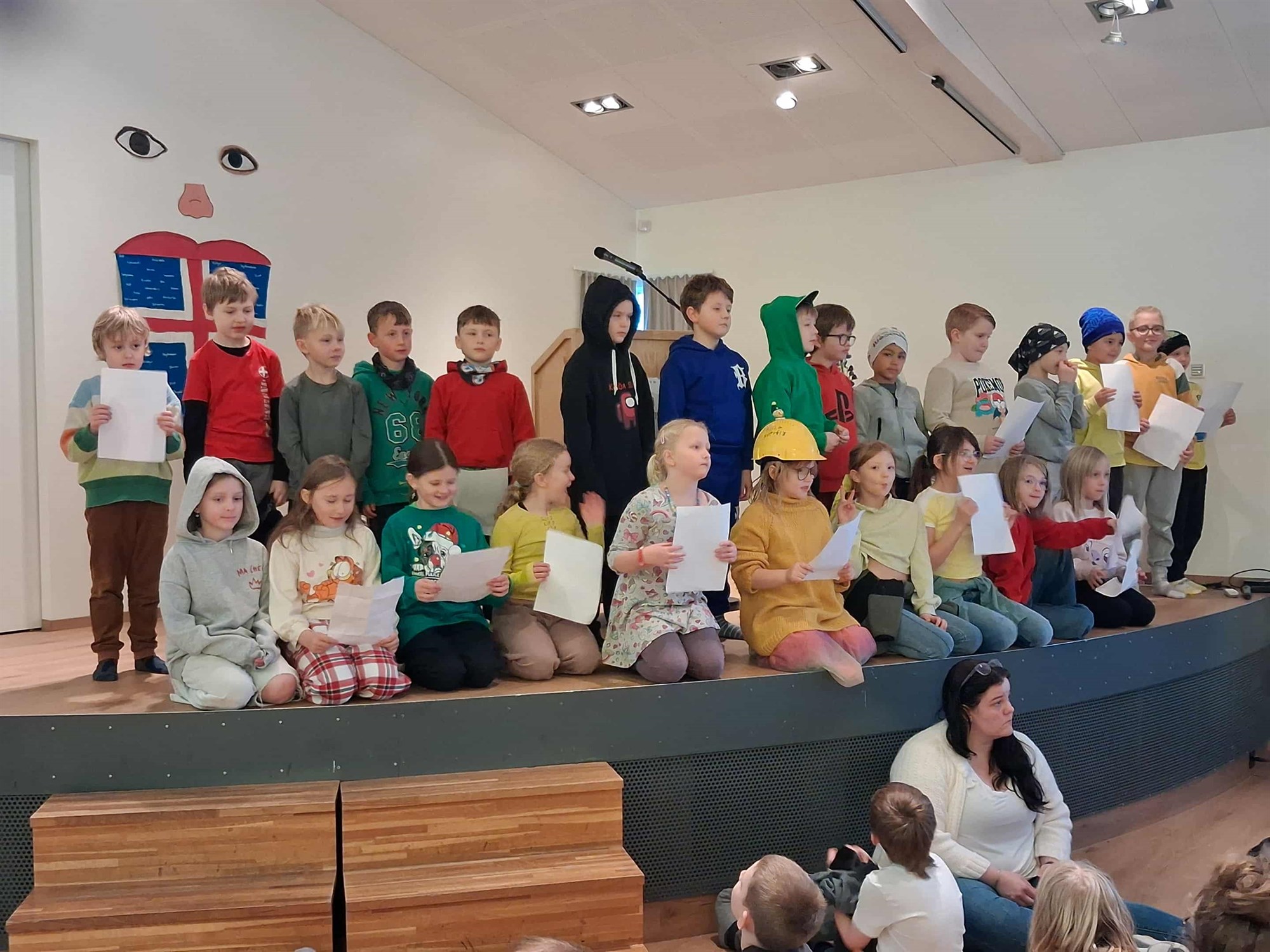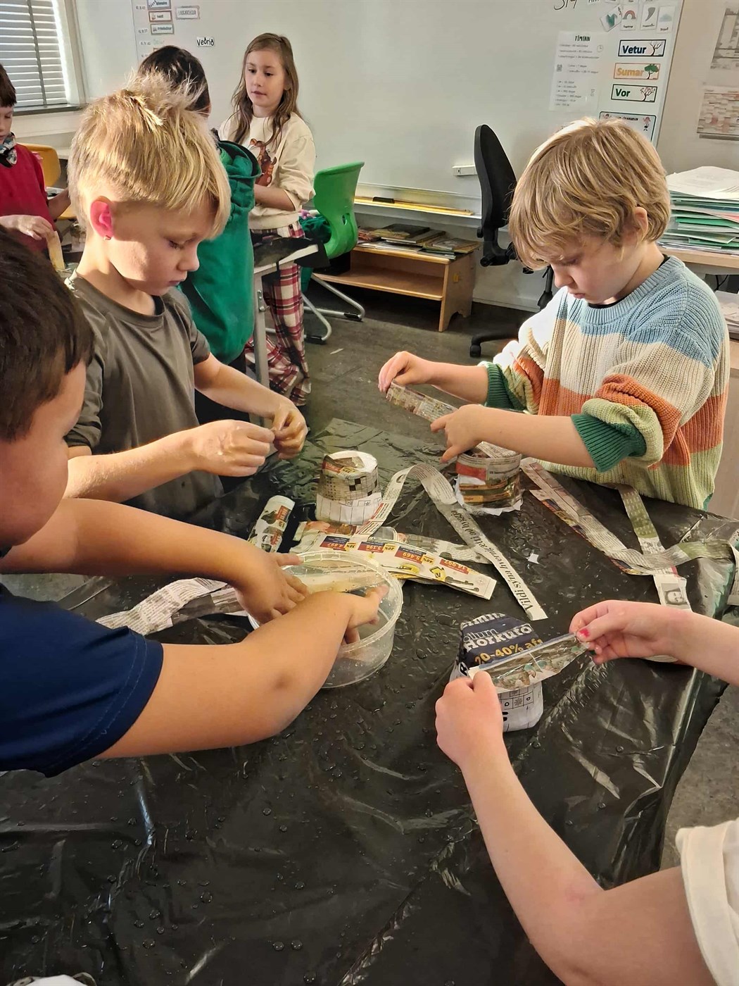 Því næst fóru nemendur í sínar stofur og unnu áfram með verkefni tengd „Degi íslenkrar tungu“.