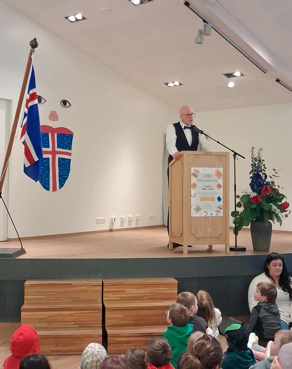 Litla og Stóra upplestrarkeppnin var sett og fór skólastjóri yfir að nú sé formlegur undirbúningur fyrir keppnirnar hafinn. Nemendur í 3. bekk sungu lagið „Á íslensku má alltaf finna svar.“ Og að lokum sýndu nemendur í smiðjum stutt myndband í tilefni dagsins.