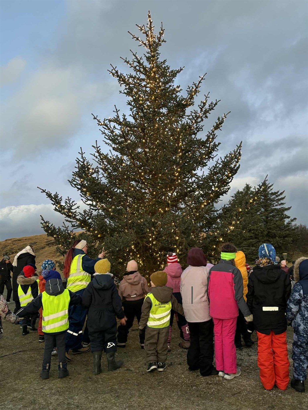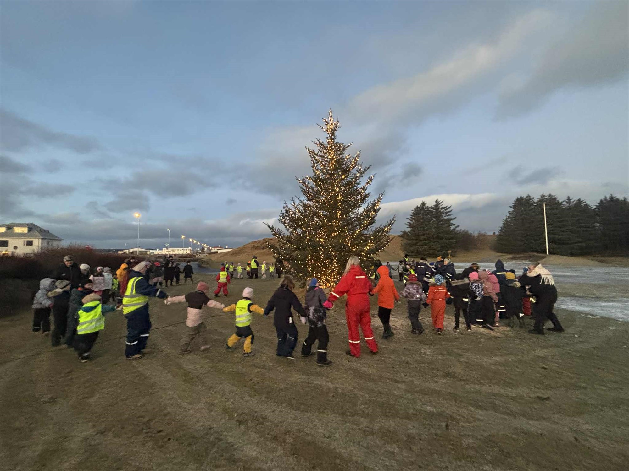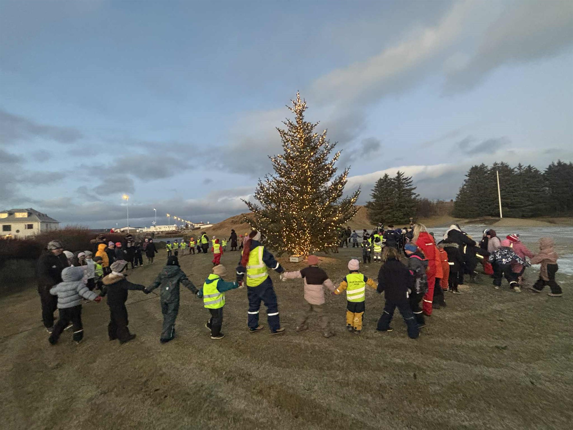 Það var sönn hátíðarstund í Aragerði í morgun þegar kveikt var á fallega jólatrénu okkar. Nemendur í 1.-4. bekk fylgdust spennt með þegar kveikt var á því. Sjálfur jólasveinninn mætti óvænt á svæðið og vakti mikla lukku.